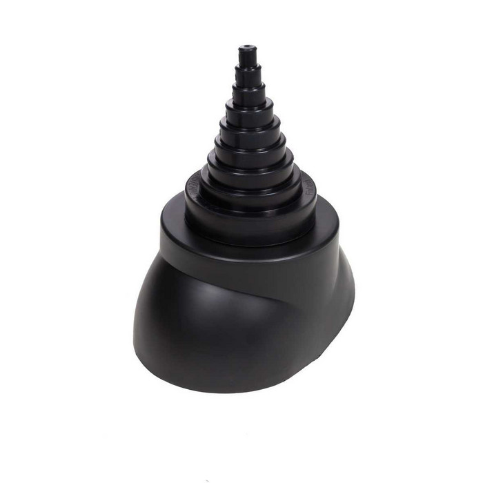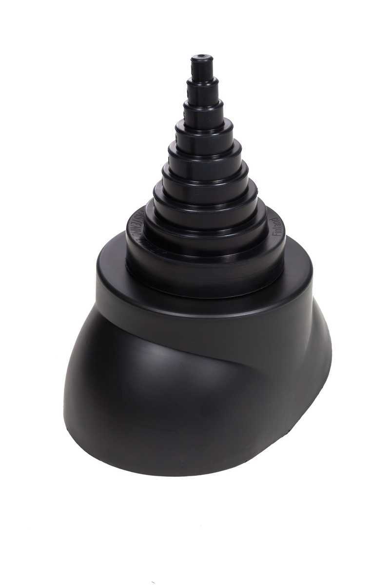 Изделие состоит из пластикового ворота, уплотнителя из EPDM -резины с условными диаметрами 12/19/25/38/50/60/75/90/100 мм и металлического хомута из нержавеющей стали. Пластиковый ворот устанавливается на проходной элемент VILPE . Проходной элемент подбирается по типу кровельного материала и заказывается отдельно.