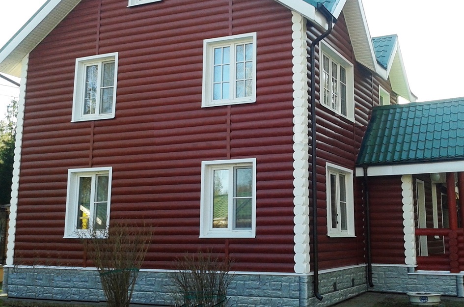 Металлический сайдинг Grand Line Блок-хаус 0.5 мм Satin RAL 3009 оксидно-красный