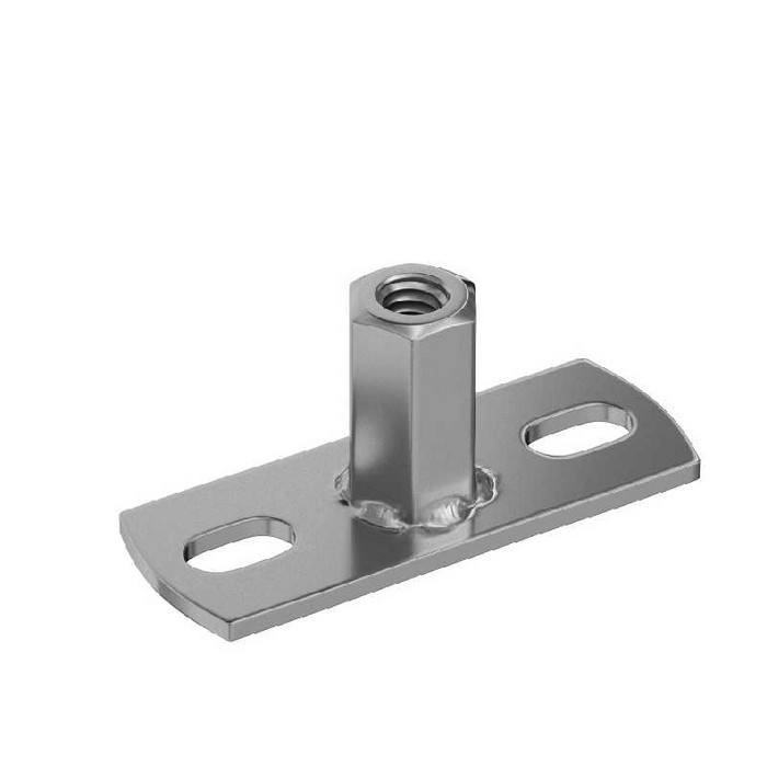 Данный элемент предназначен для крепления хомута водосточной трубы на все типы вентилируемых фасадов, а также любые типы фасадов имеющих облицовку из тонколистовых металлов (сэндвич-панели, металло-кассеты, линеарные панели и т.п.). Элемент представляет собой монтажную площадку из оцинкованной стали толщиной 3 мм и размером 30х80 мм, имеющую два монтажных отверстия и втулку с резьбой под шпильку М10 мм.