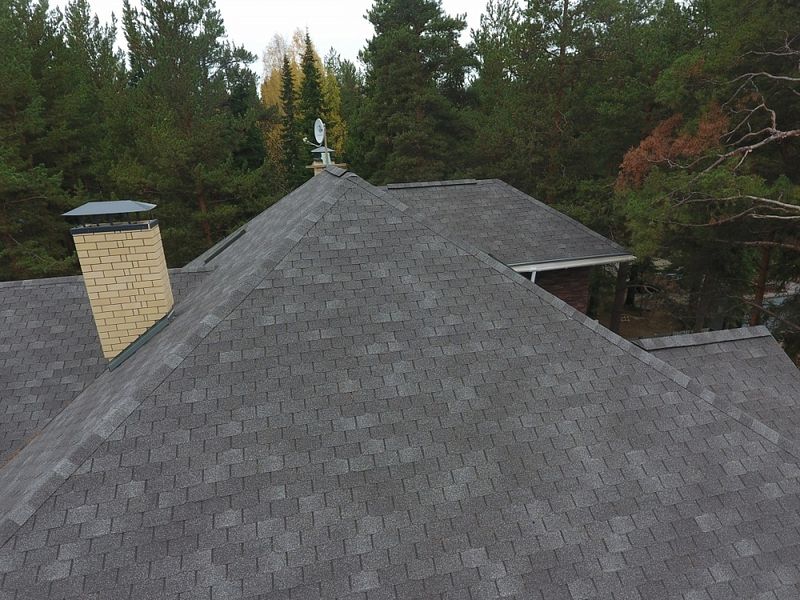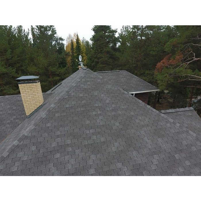 Глубокий графитовый цвет с мягкими переходами оттенков эффектно смотрится на кровлях большой площади сложной конфигурации. Дизайн гонтов не отвлекает внимание от деталей крыши. Черепица гармонично смотрится со светлыми теплыми оттенками и более насыщенными холодными тонами.