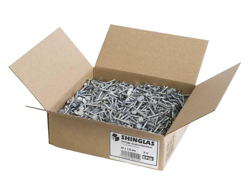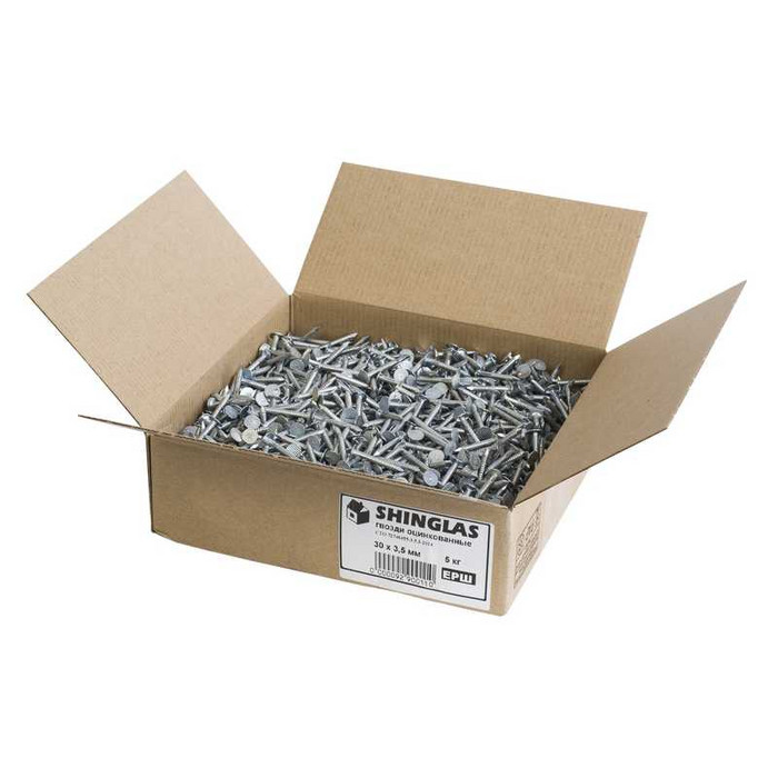 Гвозди предназначены для монтажа гибкой черепицы и доборных элементов. Расчетный расход гвоздей 80 грамм на 1 м2.