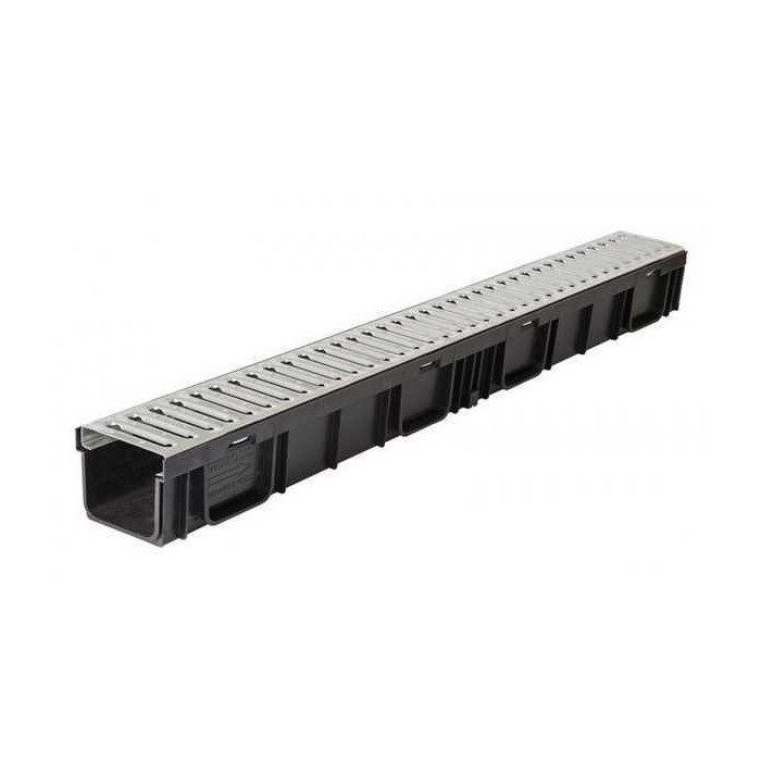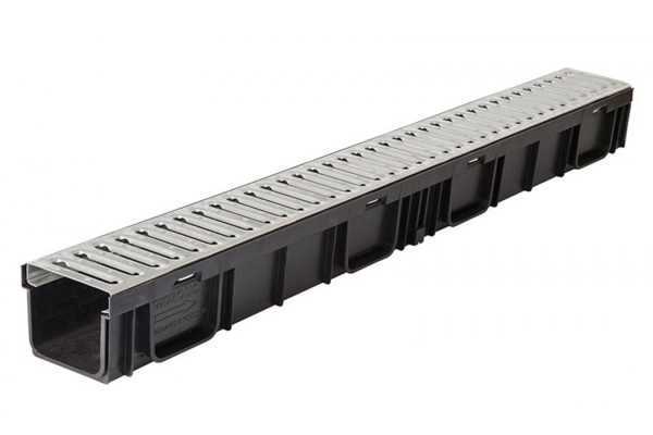 Комплект Gidrolica Light: лоток водоотводный ЛВ-10.11,5.5,5-пластиковый с решеткой РВ - 10.10,8. 100 стальной оцинк., кл. А15 (08096)