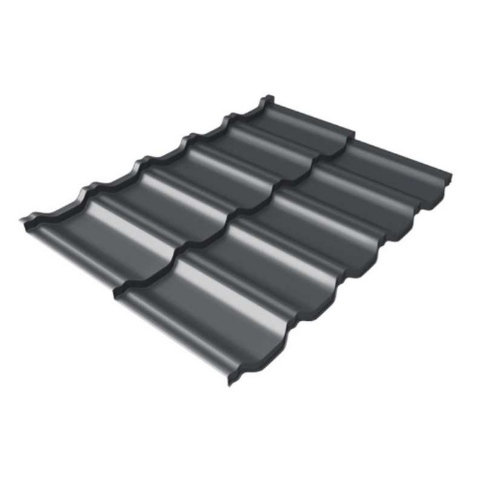 Металлочерепица Grand Line Kvinta Uno 0,5 Quarzit PRO Matt RAL 7024 Мокрый асфальт