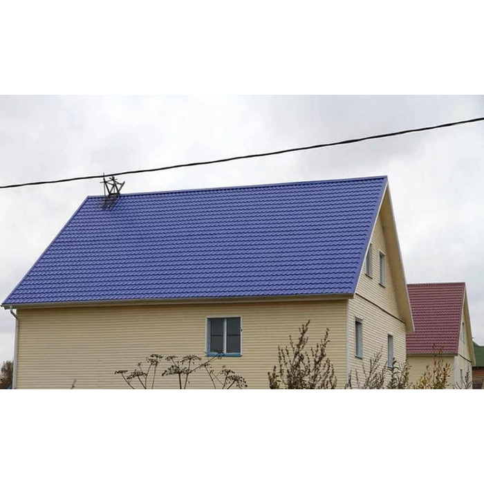 • Кровля защищена от механических воздействий, так как в основе металлочерепицы сталь толщиной 0.45 мм (с учётом металла, цинкового и полимерного слоя).