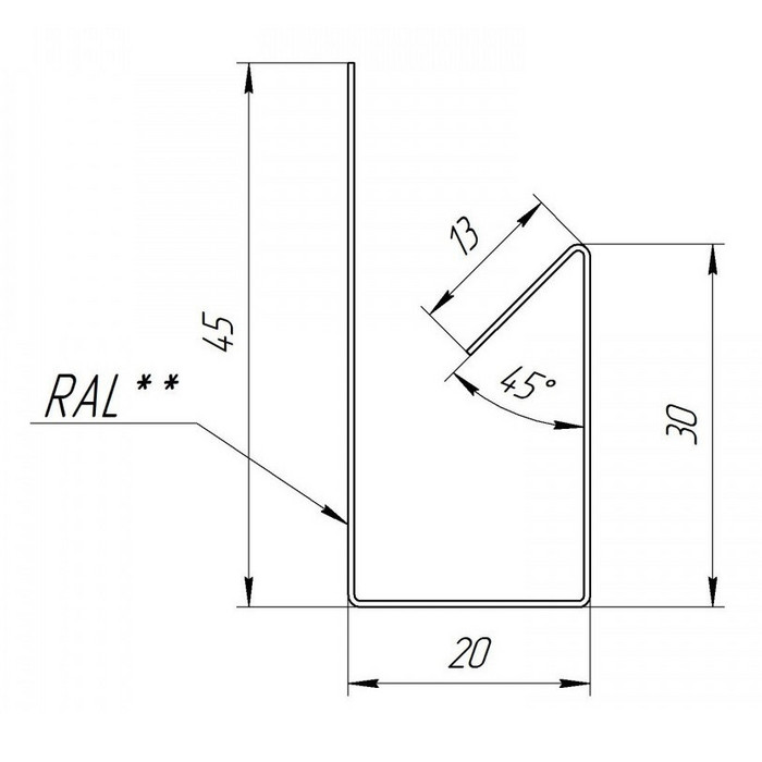 Планка J-профиль металлический Grand Line RAL 8017 Коричневый 3000 мм