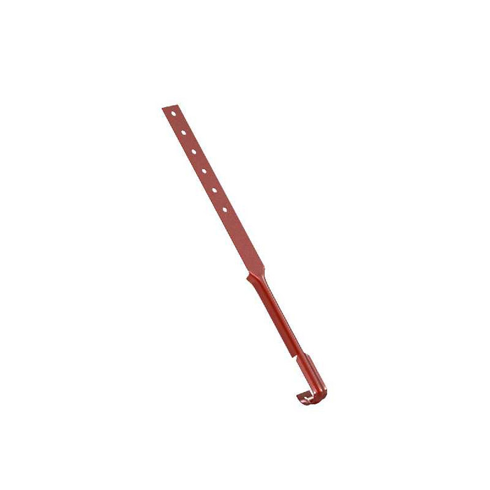 Элемент водосточной системы - поддержка желоба, предназначен для использования на всех видах кровли для обеспечения дополнительной поддержки желоба в сложных местах кровельных систем, в ендовах, или при крутых уклонах кровли, где возможен лавинообразный сход снега, который может повлечь деформацию желоба или нарушение его геометрии.