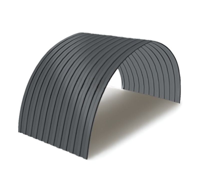 Профнастил для арочных перекрытий используется прежде всего при строительстве различных арочных конструкций, у которых существует определенный изгиб по радиусу. Он активно применяется при возведении ангаров, складов, зернохранилищ, различных округлых и полукруглых вариантов крыш и кровли. С его помощью можно построить как большое здание сельскохозяйственного назначения, так и красивый эстетичный навес для автомобиля площадью несколько квадратных метров. Основной отличительной особенностью данного вида профлиста является его изогнутая по радиусу форма, сформированная на специально предназначенной для этого профилегибочной линии. Радиус изгиба может быть самый разнообразный, и зависит прежде всего, от требований заказчика и характеристик будущего здания. Плюсами такого материала являются как его изготовление в заводских условиях, так и геометрическая точность, в результате чего стыки листов практически не видны и конструкция выглядит действительно монолитной.