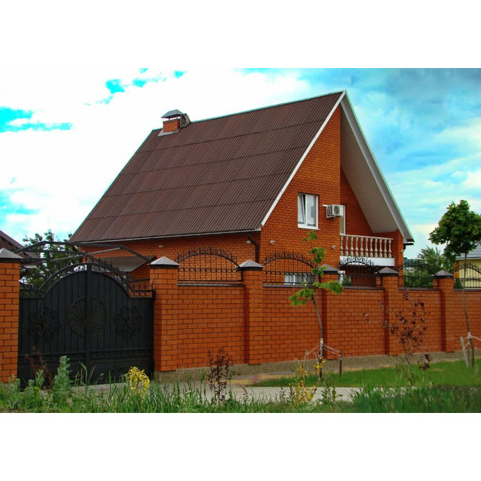 Цветной шифер марки — СВ-40, изготовлен из экологически чистого, отечественного природного материала. Обладает отличной звукоизоляцией, что бывает очень удобно для частного дома. Данная марка шифера превосходит по своим характеристикам, множество других более дорогостоящих кровельных покрытий.