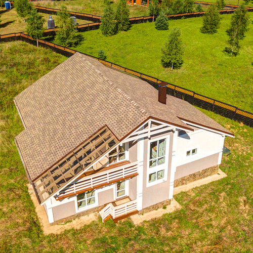 Многослойная черепица ТЕХНОНИКОЛЬ SHINGLAS коллекция КАНТРИ – это штучный битумосодержащий кровельный двухслойный материал. Изготавливается нарезанием листов из рулонного материала, получаемого путем пропитки и покрытия стекловолокнистой основы битумным вяжущим, с последующим нанесением различных видов защитных покрытий и склейкой двух листов разной формы. Гарантийный срок службы – 50 лет.