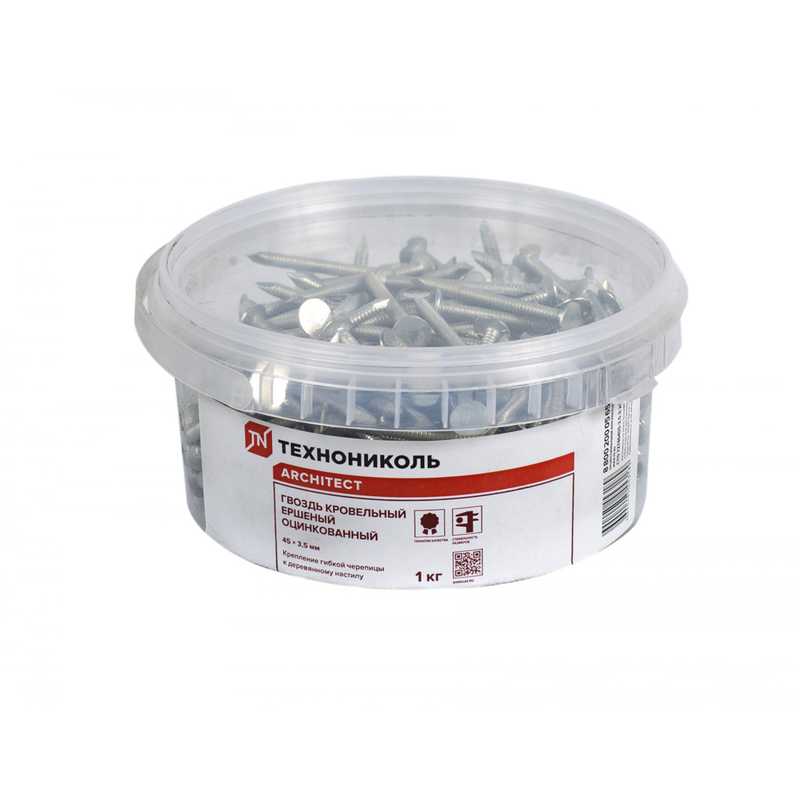Ведерко УДЛИНЕННЫХ ершеных гвоздей ТЕХНОНИКОЛЬ 45х3,5, 1 кг